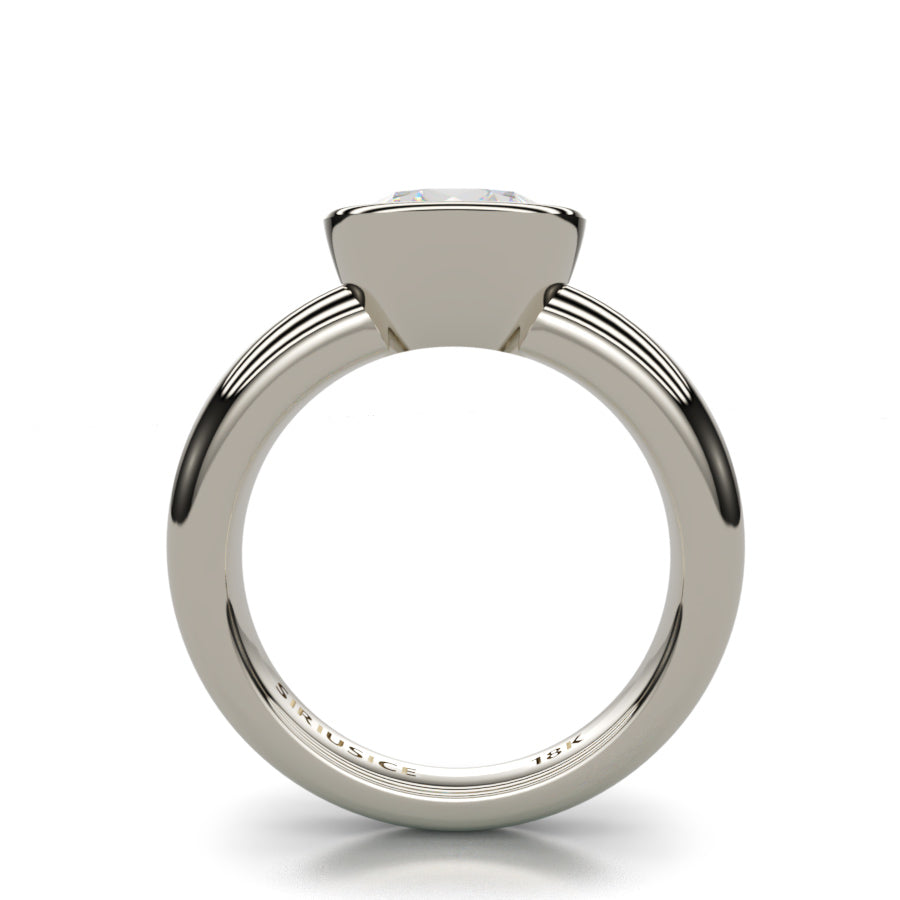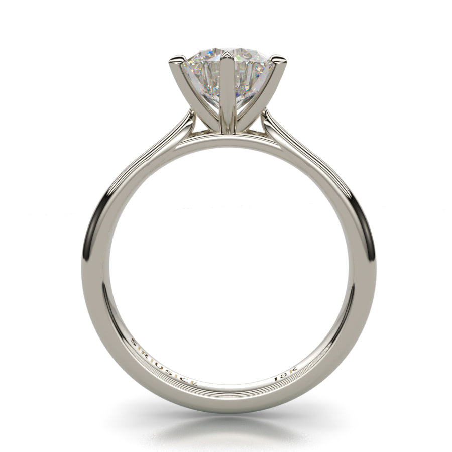 En su interior, un diamante central SIRIUS STAR® se eleva sobre cuatro elegantes y refinadas garras: líneas arquitectónicas limpias que resultan marcadamente contemporáneas a la vez que rinden homenaje al diseño clásico. La delgada banda semicircular es elegantemente minimalista, con un contorno cuidadosamente diseñado para que se integre visualmente y el diamante central brille con luz propia. SIRIUS STAR® parece flotar en el aire, irradiando luz desde todos los ángulos.