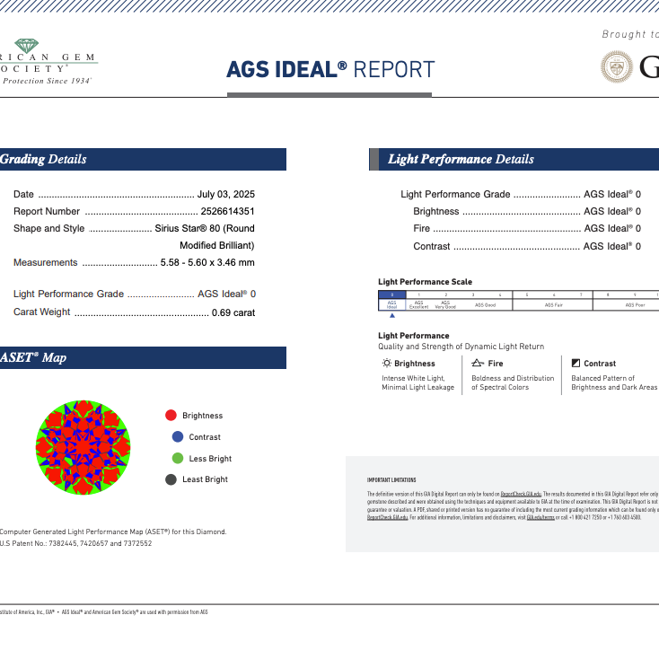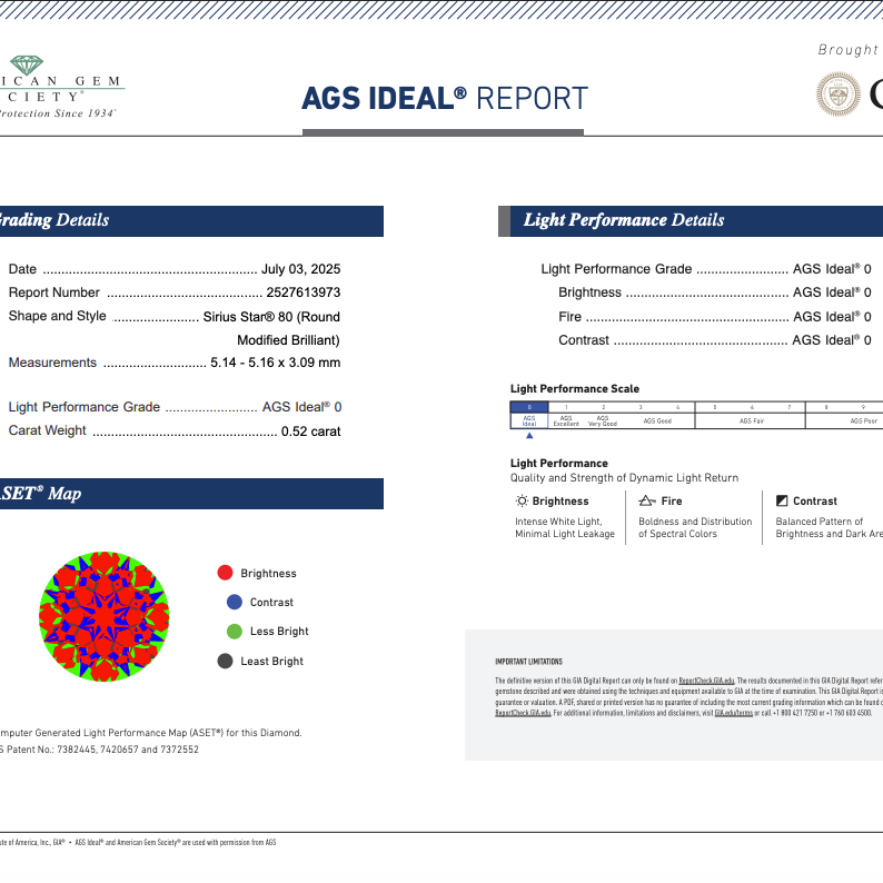 Los diamantes SIRIUS STAR® se someten a una rigurosa clasificación y certificación por parte de los principales institutos gemológicos, lo que ofrece total confianza en su autenticidad y calidad.