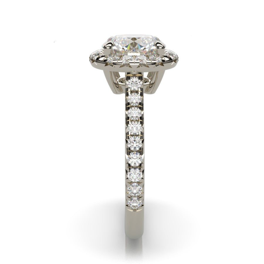 La montura Pleiades concentra la luz como un cúmulo estelar, enmarcando un brillante diamante central SIRIUS STAR® con un audaz halo de alta centelleo y una banda con diamantes. Una refinada montura de cuatro puntas presenta el diamante central con nitidez, mientras que diamantes redondos más grandes, meticulosamente combinados, forman un halo luminoso que amplía visualmente el campo de visión y ofrece un brillo radiante desde todos los ángulos. A lo largo de los hombros, diamantes engastados al estilo francés continúan la constelación: elegantes, uniformes y brillantes hasta el último detalle.