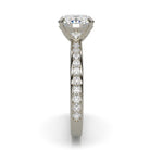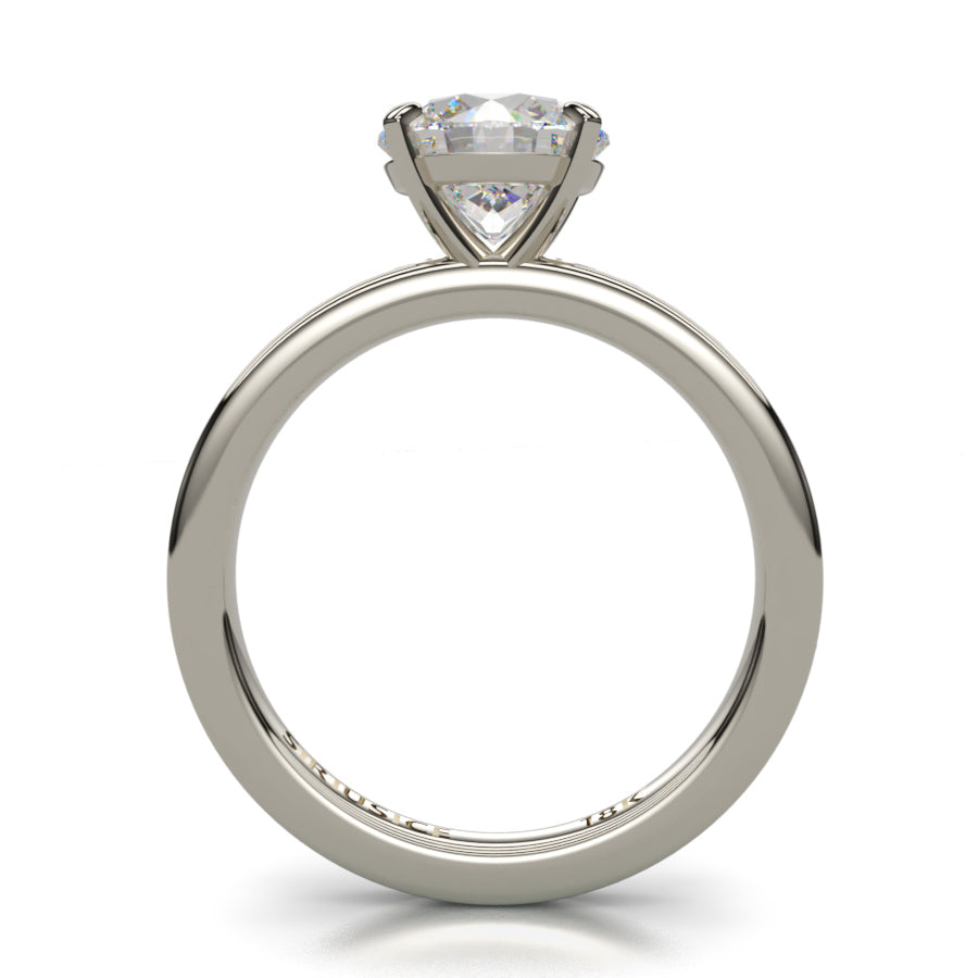 El engaste Aquila combina un luminoso diamante central SIRIUS STAR® con detalles modernos y nítidos. Una refinada montura de cuatro garras eleva la piedra justo por encima del dedo, mientras que un elegante canal de diamantes pavé engastados a mano recorre los hombros, enmarcado con precisión por paredes pulidas para una silueta suave y elegante.