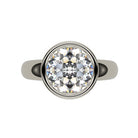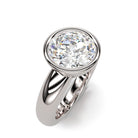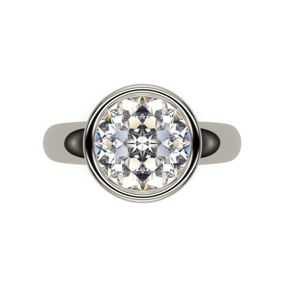 El engaste Gemma realza el solitario con un elegante bisel completo que enmarca el diamante SIRIUS STAR® en un metal de tacto suave como el líquido.
