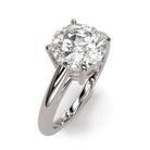 El engaste Signus realza el solitario con líneas arquitectónicas nítidas y un perfil abierto y ultraligero. Un brillante diamante central SIRIUS STAR® está sujeto por cuatro garras refinadas, suspendido sobre un brazo catedral dividido que converge en una cesta minimalista.