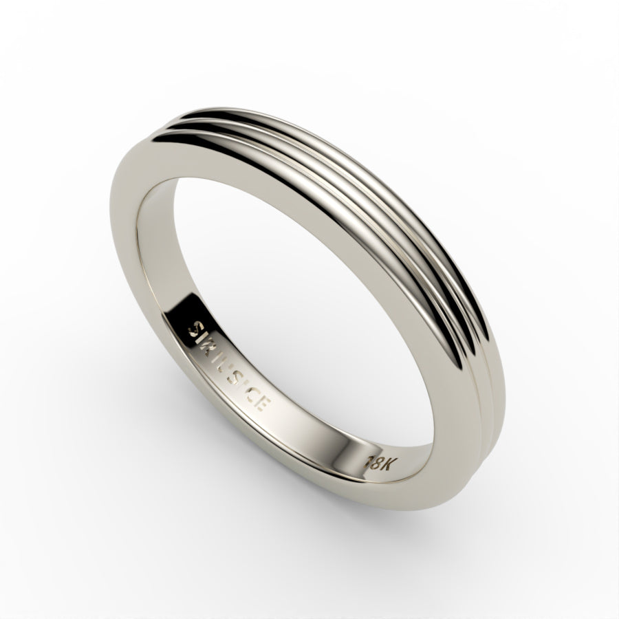 Perfil moderno de triple cúpula, 3 mm de ancho, interior cómodo, acabado de alto brillo, oro de 18 quilates/platino, diseño discreto para uso diario.