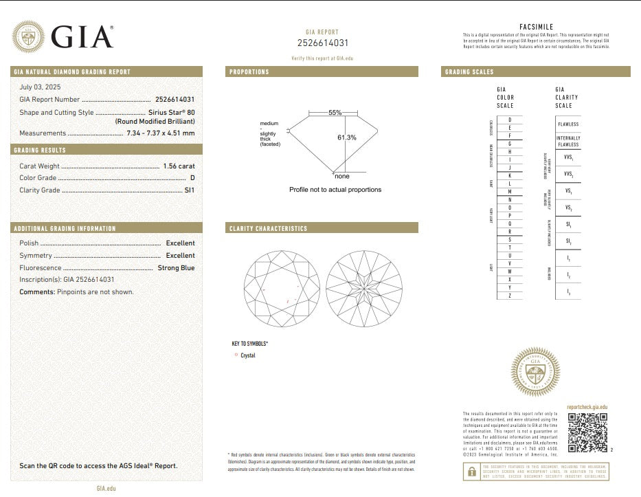 Si bien los diamantes AGS Ideal se consideran excepcionales en simetría, proporción y retorno de luz, el DIAMANTE SIRIUS STAR® supera estos estándares gracias a su revolucionaria arquitectura de facetas y su ingeniería de precisión.