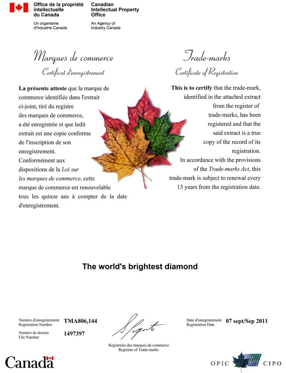 La marca registrada “THE WORLD'S BRIGHTEST DIAMOND™” representa el brillo y el rendimiento óptico inigualables del DIAMANTE SIRIUS STAR® .